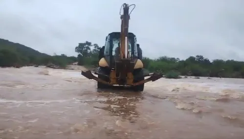 Uma moradora do povoado de Poço de Fora, na zona rural de Curaçá, no norte da Bahia, precisou usar uma retroescavadeira para atravessar um rio durante as fortes chuvas que atingiram a região no sábado, 28. Ela precisava chegar a Juazeiro, a cerca de 94 quilômetros, para realizar uma sessão de hemodiálise.