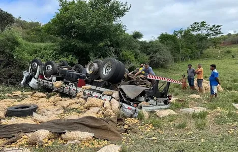Pai e filho morrem após caminhão capotar na BA