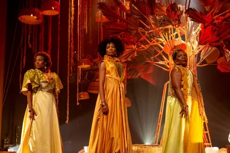Os figurinos, assinados por Luciano Santana, dialogam com os processos de amadurecimento da mulher negra e trazem simbologias ligadas a Oxum, orixá presente nas religiões de matrizes africanas. “São referências às vestimentas do amadurecimento de uma mulher negra, com simbologia e códigos que remetem aos caminhos de Oxum dentre os dogmas do Candomblé”, detalha Fred.