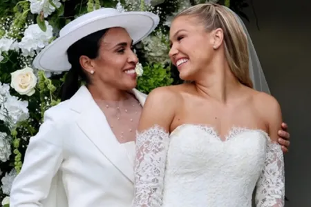 A jogadora Marta, de 39 anos, conhecida como a "Rainha do futebol", se casou com a ex-atleta da modalidade, a norte-americana Carrie Lawrence, de 28, em uma cerimônia na Flórida, Estados Unidos, onde vivem atualmente.