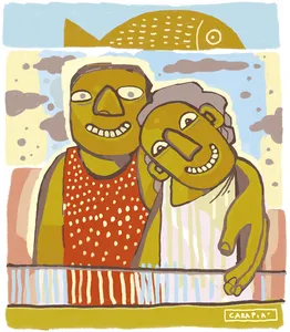 Mas ainda é cedo, estamos sob o entardecer de Itaparica. Para adiar o fim do mundo, compartilho com você o álbum Pelos Olhos do Mar. Em outra ilha, a quase mil quilômetros de nós, Lia de Itamaracá e Daúde cantam Santo Antônio da Boa Fortuna. Sentados em um banco diante do mar, somente nossos ouvidos escutam as vozes cheias de súplicas dessas mulheres. Você recosta a cabeça no meu ombro bronzeado. Inclino minha cabeça sobre a sua. Nossos cabelos se emaranham num carinho singular. Fios brancos já surgem em mim e em você. Que bom. O mundo ainda não acabou.