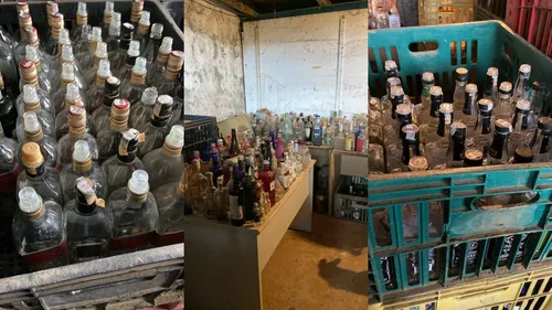 As equipes da Seccional localizaram um galpão utilizado como depósito irregular de vasilhames de bebidas alcoólicas. No local, as garrafas estavam separadas por marca e funcionários foram flagrados realizando a higienização dos frascos, indício de que seriam preparados para novo envase e posterior venda.