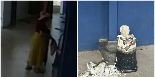 Uma escultura de Padre Cícero instalada na rodoviária do Crato, no Ceará, foi derrubada e quebrada, na tarde desta quinta-feira, 19, por uma turista argentina. A mulher foi presa por agentes da Guarda Civil Municipal, após ser flagrada pelo sistema interno de câmeras do terminal.