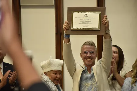 O secretário de Cultura da Bahia, Bruno Monteiro, foi agraciado com o Título de Cidadão Baiano em cerimônia que lotou o Plenário Orlando Spínola, na Assembleia Legislativa da Bahia (Alba), na tarde desta quinta-feira, 27.