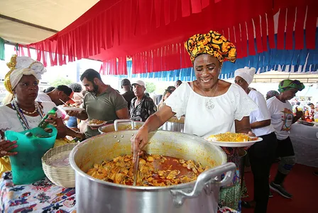 Marcado para ser distribuído às 15h – por tradição, de graça –, por volta de 12h a movimentação já era grande no píer, que recebia também um evento em comemoração ao Dia do turismo, que teve a presença do secretário de turismo da Bahia, Maurício Bacelar. Este ano foram usados 10 mil quiabos, segundo os organizadores, número que garantiu a oferta do prato a todos no local.