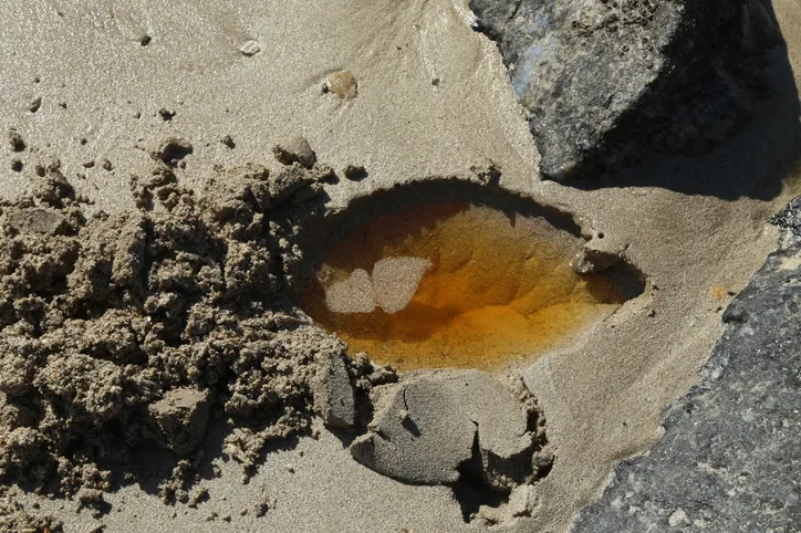 As substâncias foram encontradas na faixa de areia localizada atrás de uma empresa que atua com estocagem e movimentação de graneis sólidos. O material, de acordo com o órgão ambiental, não apresenta características naturais da região e se tornava visível quando a areia era revolvida.