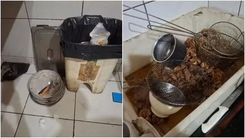 Durante a inspeção, os fiscais identificaram alimentos deixados no chão, presença de larvas e baratas, ralos sem vedação, lixeiras abertas e falta de pias específicas para a higienização das mãos.